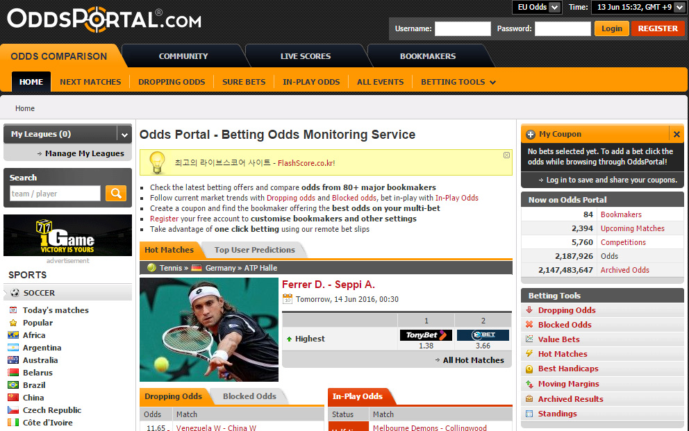 스포츠 배팅을 시작하기 전 기본적인 배당 확인을 위해 필수적으로 검색해야만 하는 사이트입니다. 오즈포탈은 세계 각국의 스포츠 배당과 라이브 스코어 여러 배터들의 배팅 동향을 한눈에 보기 쉽게 무료로 회원가입